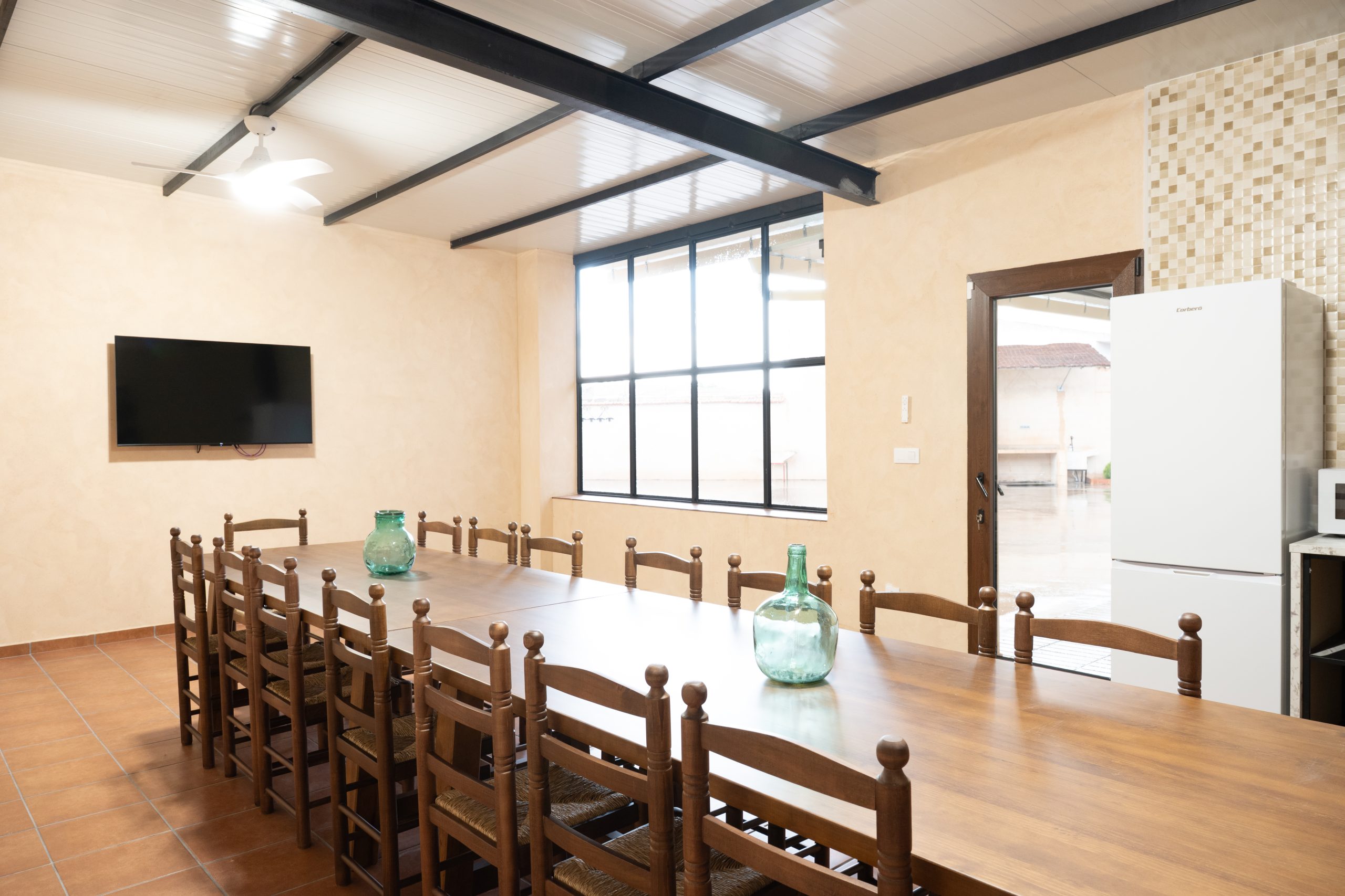 El gran salón con cocina hará el centro de reunión perfecto, alrededor de la gran mesa de comedor, podéis pasar ratos en familia o con amigos disfrutando de nuestros juegos de mesa o charlando. Pero además, la gran cocinilla/merendero también es un espacio estupendo para pasar el rato frente al horno de leña.